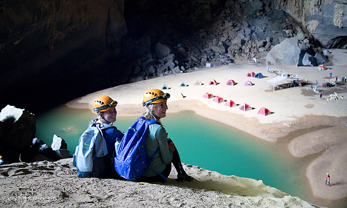 Foreign tourists inside En Cave in Phong Nha-Ke Bang in Quang Binh Province, 2019. Photo by VnExpress/Hoang Tao