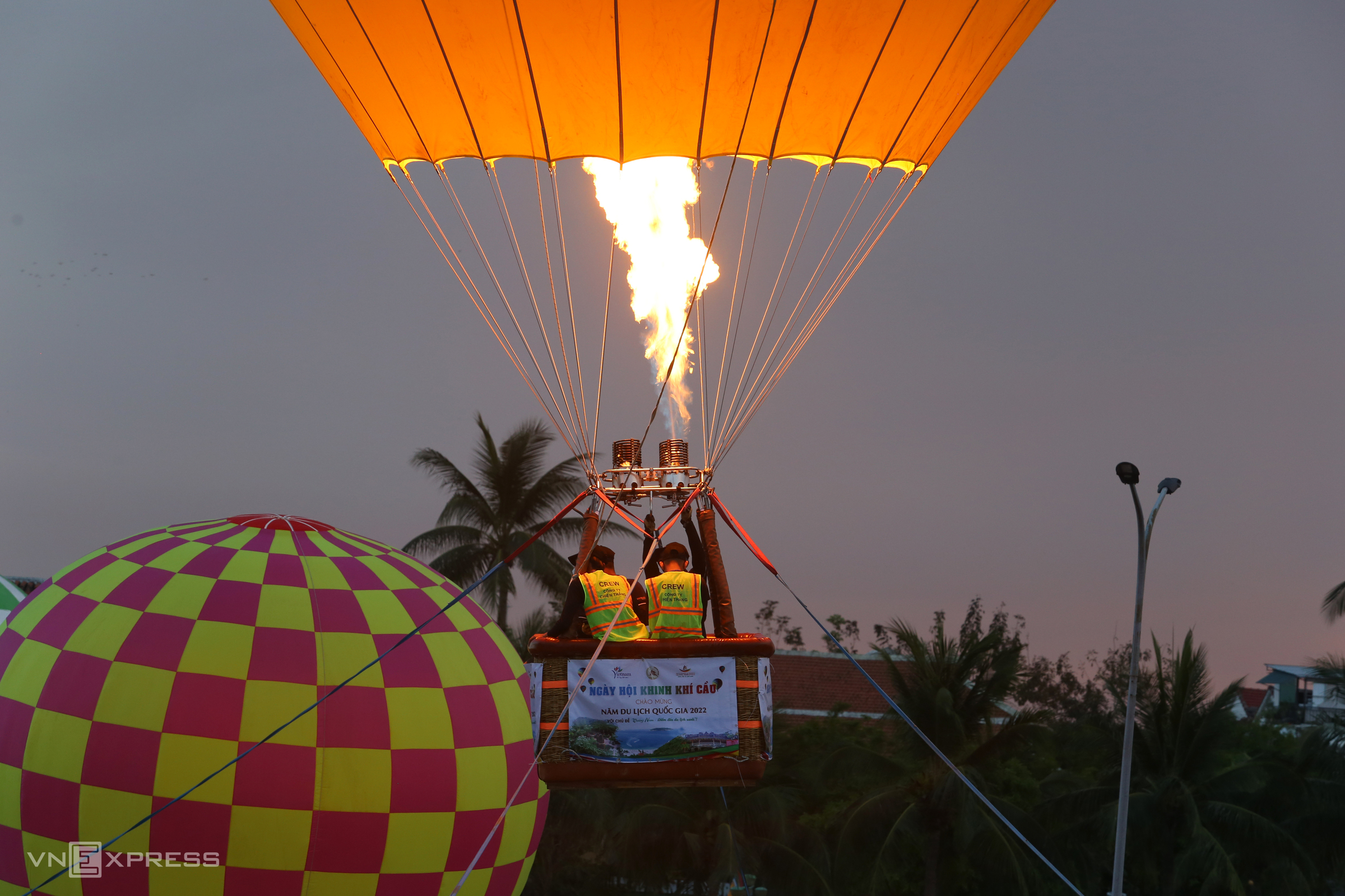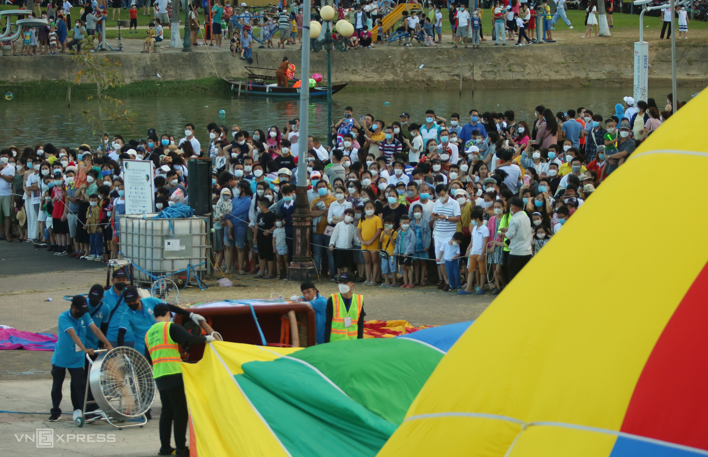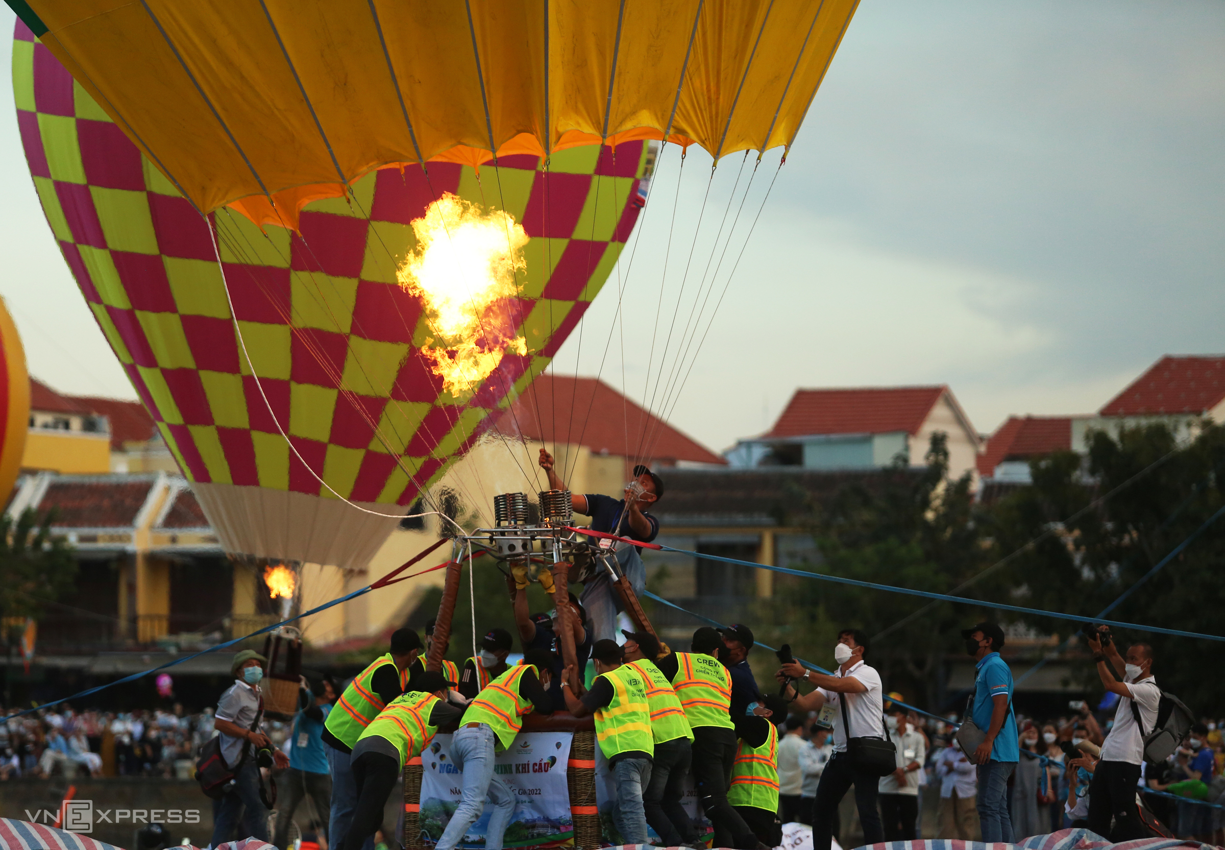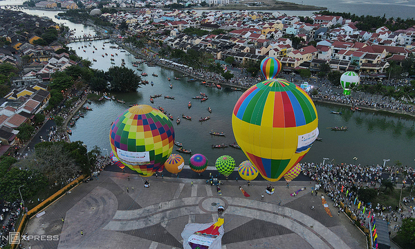 The hot air balloon festival at the Hoai River Square, organized by Hoi An People's Committee, lasts from Friday to Saturday. It is part of the 2022 National Tourism Year event named "Quang Nam - Green destination".